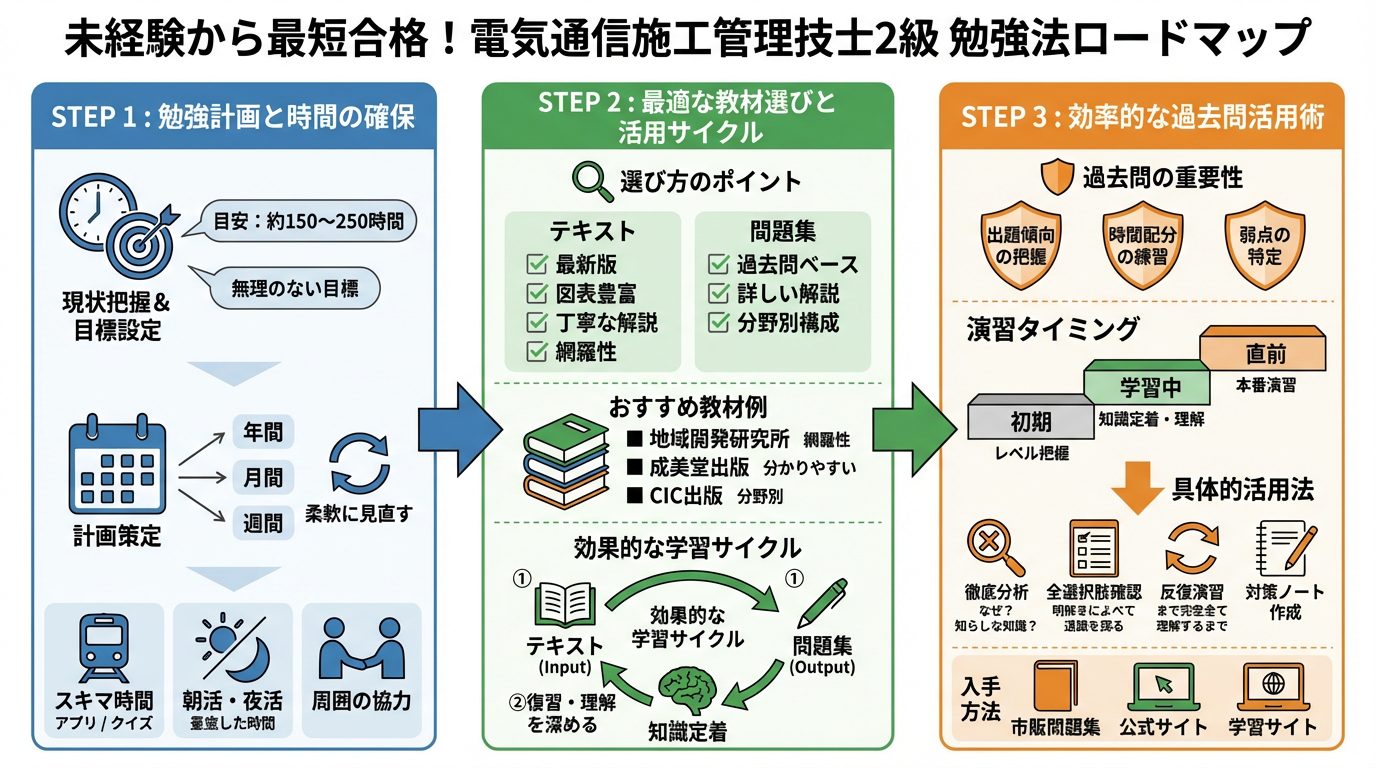 電気通信 施工管理技士 2級:最短合格への道!未経験から仕事をしながら目指せる勉強法を徹底解説