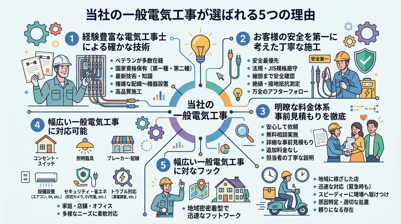 3. 当社の一般電気工事が選ばれる5つの理由